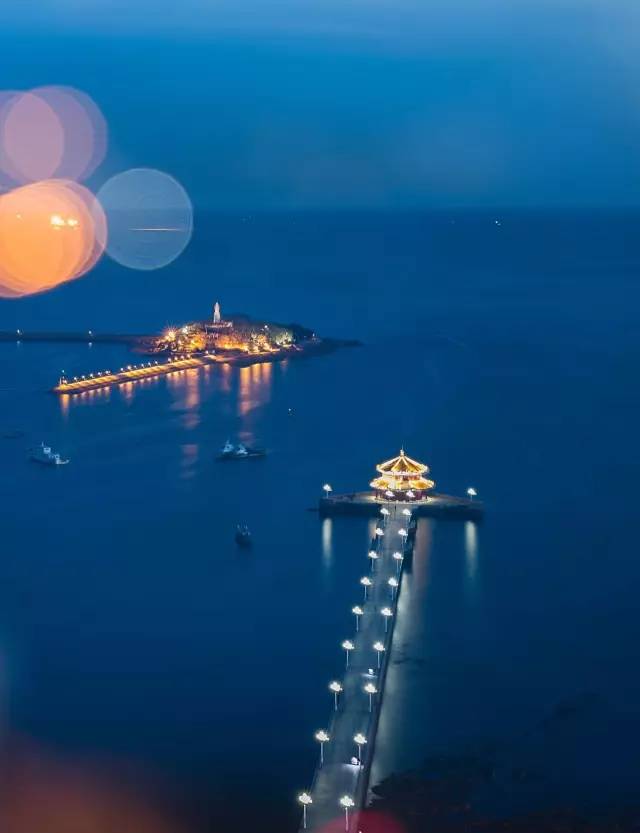 (下方為青島棧橋,始建于1892年,是青島最早的軍事專用人工碼頭建筑,現(xiàn)在已成為青島的標(biāo)志之一;上方的島嶼為小青島,被認(rèn)為是“青島”得名之處;攝影師@劉中)