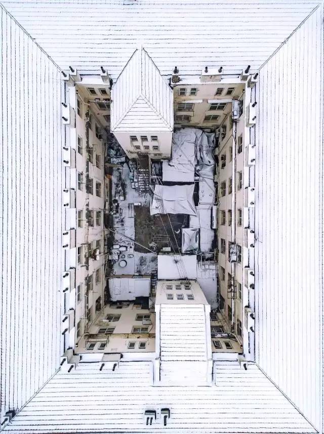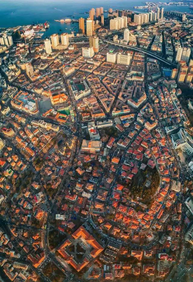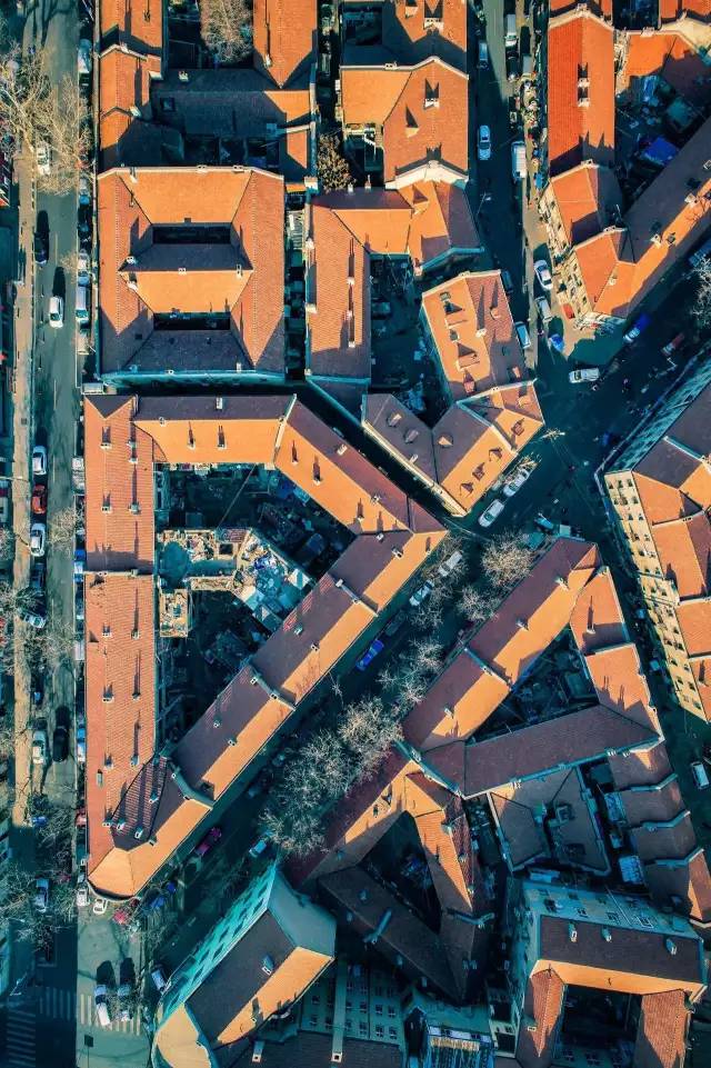 (航拍黃島路與芝罘路交駐口的里院,攝影師@盧暉)