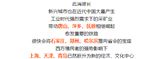 (近代中國部分城市興衰圖,紅色為新興城市,白色為衰落城市;數(shù)據(jù)源自何一民《中國近代衰落城市研究》,底圖源自國家測繪地理信息局,星球研究所制作)