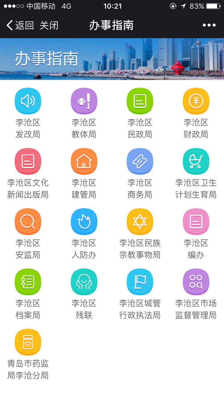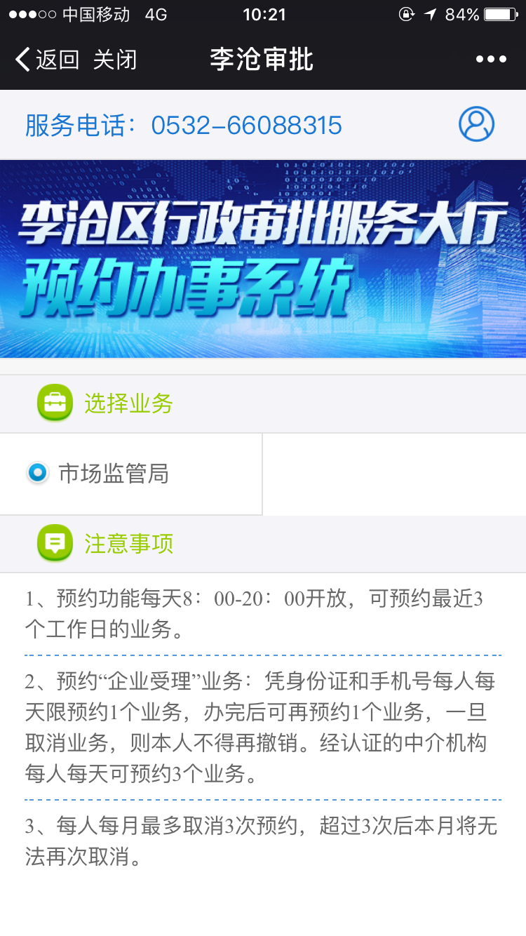 關(guān)注微信公眾號“李滄區(qū)政務(wù)服務(wù)大廳”后,點擊“微大廳”進(jìn)入大廳首頁,行政審批大廳簡介、辦件統(tǒng)計、叫號查詢、辦事部門、事項辦理情況幾個板塊在簡潔的頁面上清晰明了。據(jù)了解,目前網(wǎng)上大廳共入駐了區(qū)市場監(jiān)管局、區(qū)城管局、區(qū)商務(wù)局、區(qū)食藥監(jiān)局等17個職能部門,辦事居民可在此對應(yīng)相關(guān)業(yè)務(wù)進(jìn)行辦事指南查看、網(wǎng)上預(yù)約和快遞查詢等操作。