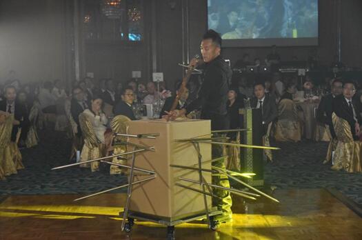 慶祝晚宴中最引爆觀眾熱情的,是邀請(qǐng)了分別來自香港及馬來西亞的國際級(jí)魔術(shù)師兼健力士世界紀(jì)錄保持者李行齊及曾玉良夫婦 (Avery& Sylvia) 前來獻(xiàn)技,并攜手創(chuàng)下「100秒內(nèi)完成最多組變裝及瞬間轉(zhuǎn)移幻象」之世界紀(jì)錄,令人驚嘆。值得一提的是,此項(xiàng)創(chuàng)舉已獲世界紀(jì)錄中最大的魔術(shù)組織「國際魔術(shù)師協(xié)會(huì)」頒發(fā)成功創(chuàng)下世界紀(jì)錄的證書,同時(shí)亦會(huì)申請(qǐng)成為「健力士世界紀(jì)錄」。