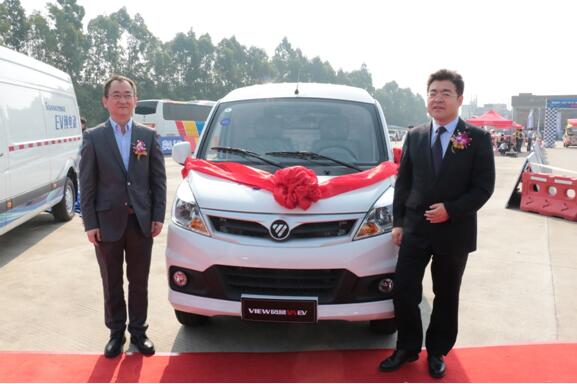 【廣州市聚力供應(yīng)鏈商會(huì)監(jiān)事、凌科供應(yīng)鏈董事長(zhǎng)王勇先生與福田輕型商用車事業(yè)本部營(yíng)銷公司副總經(jīng)理王明亮先生為福田風(fēng)景V5純電動(dòng)物流車新品揭幕】