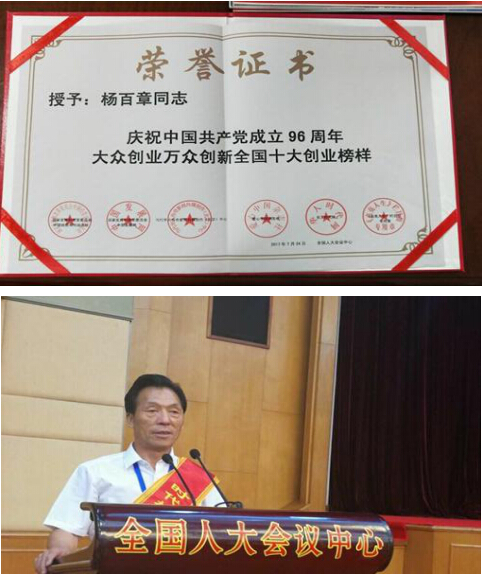 2017年7月24日,“慶祝中國(guó)共產(chǎn)黨成立96周年大眾創(chuàng)業(yè)萬(wàn)眾創(chuàng)新經(jīng)驗(yàn)交流大會(huì),時(shí)代楷模第十四屆中國(guó)公益人物(集體)頒獎(jiǎng)盛典”在北京全國(guó)人大會(huì)議中心舉行,來(lái)自于全國(guó)各地的杰出企業(yè)家齊聚一堂。實(shí)現(xiàn)中國(guó)夢(mèng)是總書(shū)記的偉大戰(zhàn)略,也是我們每一個(gè)中國(guó)人的追求。近年來(lái),陜西秦晉礦業(yè)集團(tuán)、認(rèn)真貫徹“四個(gè)全面”戰(zhàn)略布局,自覺(jué)踐行五大發(fā)展理念,始終以非公企業(yè)黨支部為核心、打造企業(yè)安全誠(chéng)信文化,提高全員整體素質(zhì),積極響應(yīng)國(guó)家精準(zhǔn)扶貧政策導(dǎo)向,主動(dòng)參與“萬(wàn)企幫萬(wàn)村”精準(zhǔn)扶貧行動(dòng),做出了優(yōu)異的成就,受到了社會(huì)各界的好評(píng)。楊百章的秦晉公司入選“慶祝中國(guó)共產(chǎn)黨成立96周年大眾創(chuàng)業(yè)萬(wàn)眾創(chuàng)新全國(guó)十大創(chuàng)業(yè)榜樣”。