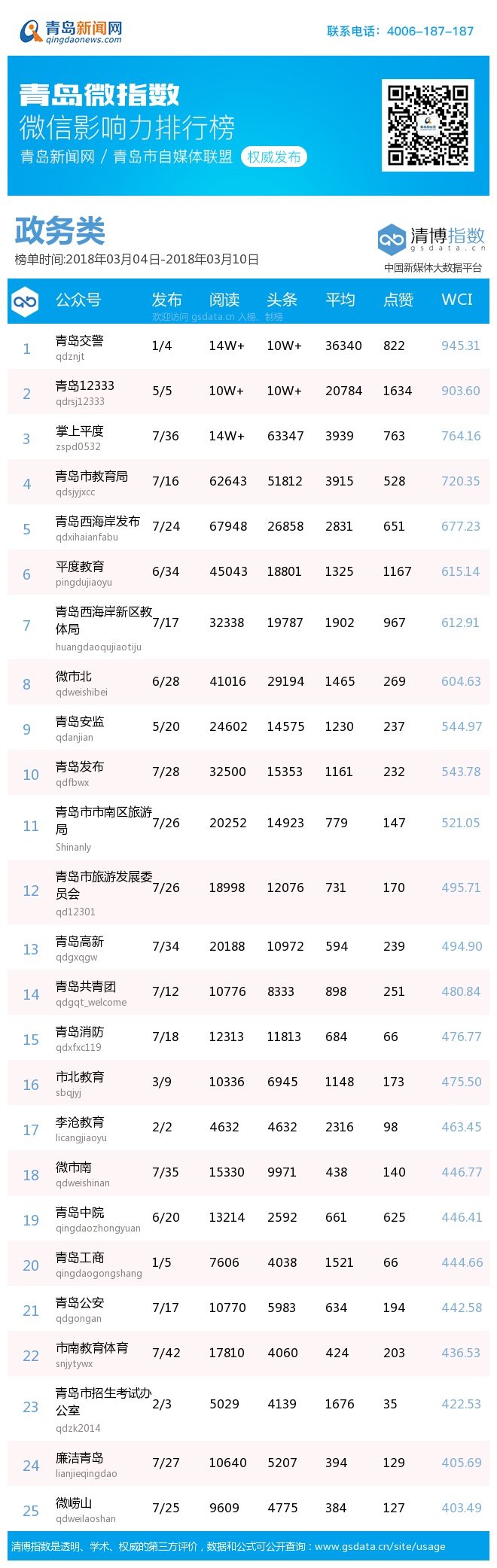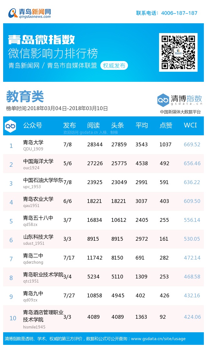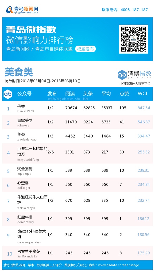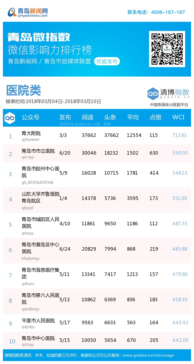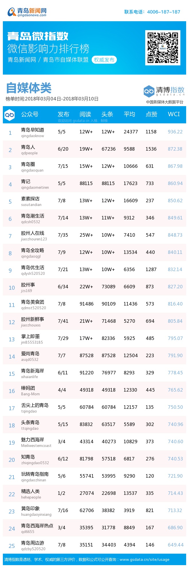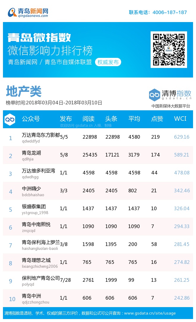 3、本次榜單收錄了青島14個行業(yè)微信公眾號,如您的賬號暫未收錄,可聯(lián)系4006-187-187。
