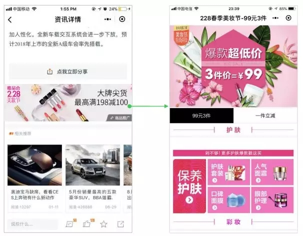 對于廣告主來說,更是超棒的機會,直接可將用戶轉(zhuǎn)化,跳轉(zhuǎn)外鏈不限制,省去中間多余環(huán)節(jié),在內(nèi)容中讓用戶產(chǎn)生購買沖動,動動指頭就能轉(zhuǎn)化了!所以,如何做好這張窄窄的圖片,是每個廣告主的必修課。