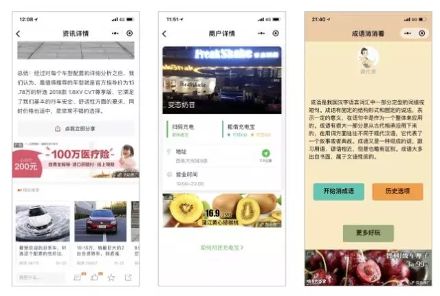 這就像是我們平時瀏覽網(wǎng)頁、微博,指不定在哪就能看到廣告。以后除了小程序頂部的輪播圖,再結(jié)合現(xiàn)在的小程序廣告(廣告大小有規(guī)定哦,后文會解釋),多種廣告形式結(jié)合起來,小程序與網(wǎng)頁完全沒什么兩樣,除了不能做浮層。