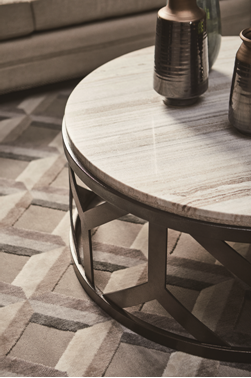 為了突出材質(zhì)原本的特點,紋理本身就成為了一種裝飾。藍金砂大理石在光照下閃爍著誘人的星點,像無數(shù)顆寶石閃閃發(fā)光,呈現(xiàn)著迷人的光彩。淺藍的色調(diào)中混合淺細白色或金色紋理,仿佛碧藍海浪沖刷出的浪漫海岸?,F(xiàn)代美式家居風格所倡導的自由自在、舒適自然的體驗在“晶粹”這一套系上體現(xiàn)得淋漓盡致。就像自然界中的“晶洞”,每一塊晶洞都是歷經(jīng)時間錘煉的精華,每一件晶粹家具都是匠心打造的精品。
