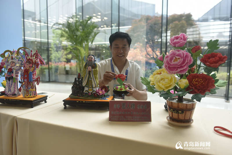 與李平一樣,國(guó)家級(jí)非遺項(xiàng)目菏澤面塑傳承人穆緒建的展演區(qū)前也站滿了“粉絲”。以孔子、泰山、黃河為元素的“山東印象”面塑讓媒體記者連連點(diǎn)贊?!翱鬃印⑻┥?、黃河是山東齊魯文化的典型代表,‘曹州面人’是國(guó)家級(jí)非物質(zhì)文化遺產(chǎn),兩者結(jié)合更能夠體現(xiàn)出中國(guó)氣派、山東風(fēng)格?!蹦戮w建說(shuō)。