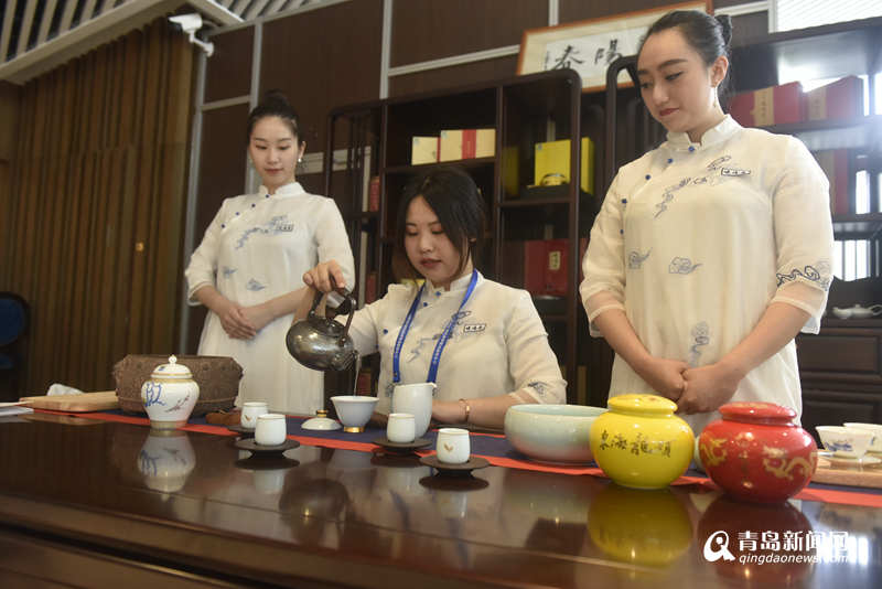 “中國(guó)人講究‘以茶待客’,茶文化在中國(guó)有悠久的文化歷史,此次有朋自遠(yuǎn)方來(lái),我們用茶表示歡迎。”在新聞中心的茶歇區(qū),由青島曉陽(yáng)春帶來(lái)的茶藝表演,引來(lái)不少目光?!拔覀兊牟杷嚤硌莞⒅貙?shí)用性,為的就是讓來(lái)賓能夠看明白,回國(guó)之后一樣能夠泡出地道的中國(guó)茶?!辈杷囌古_(tái)負(fù)責(zé)人匡明如說(shuō)。她希望外國(guó)的朋友們可以通過(guò)在茶歇區(qū)的一點(diǎn)點(diǎn)時(shí)間,對(duì)中國(guó)的茶文化有所了解。