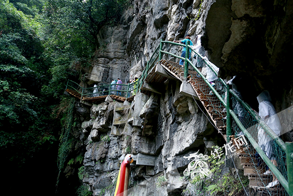 金刀峽山勢(shì)陡峭,其中的棧道給人一種驚心動(dòng)魄的刺激感覺(jué)。記者 謝鵬 攝