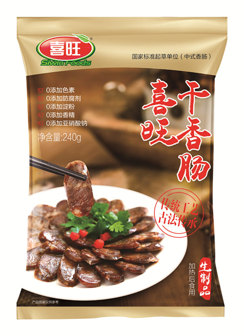 喜旺干香腸不添加任何的淀粉、香精、色素、防腐劑等