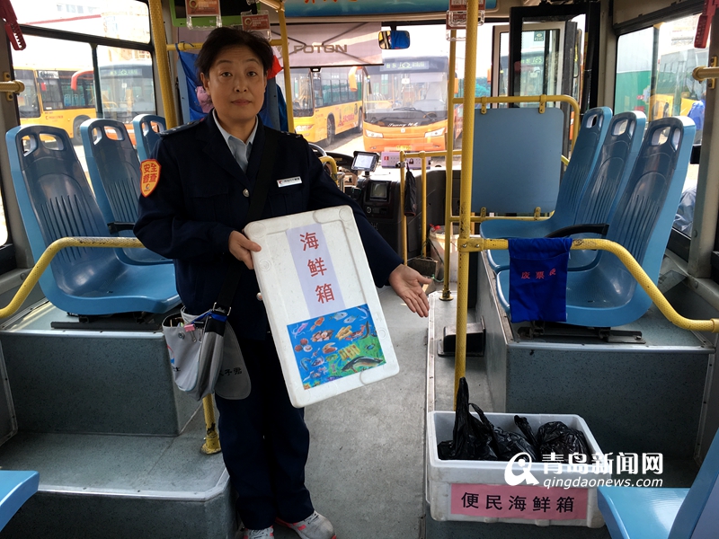“從市內(nèi)乘坐公交車到沙子口海鮮市場,大約需要60分鐘的車程?!笔心习褪康诹止军h支部副書記臧虹告訴記者,隨著天氣轉(zhuǎn)暖,車內(nèi)海鮮制品長時間暴露在室溫下容易出現(xiàn)異味,104路的海鮮箱內(nèi)均配備了冰袋、方便袋等物品,既保持海鮮的新鮮度,也避免了乘客攜帶的海鮮因包裝不嚴(yán)密撒漏在車廂內(nèi),影響車廂環(huán)境。