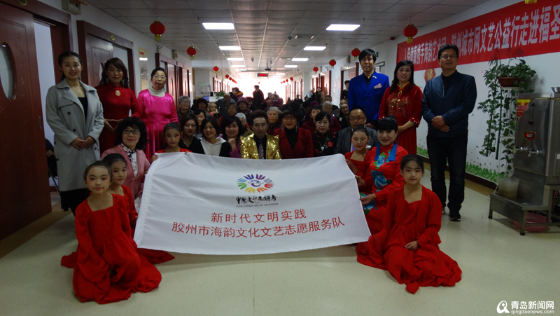 4月14日上午,由中國人民健康保險主辦,膠州海韻藝術團、膠州城市網協(xié)辦的“新時代文明實踐”公益文藝演出在膠州市福圣家老年公寓舉行。這支常年活躍的演出隊伍懷著一顆敬老尊老的大愛之心,走進膠州市福圣家老年公寓看望100多位老人,并為他們獻上了一場豐富多彩的文藝節(jié)目。