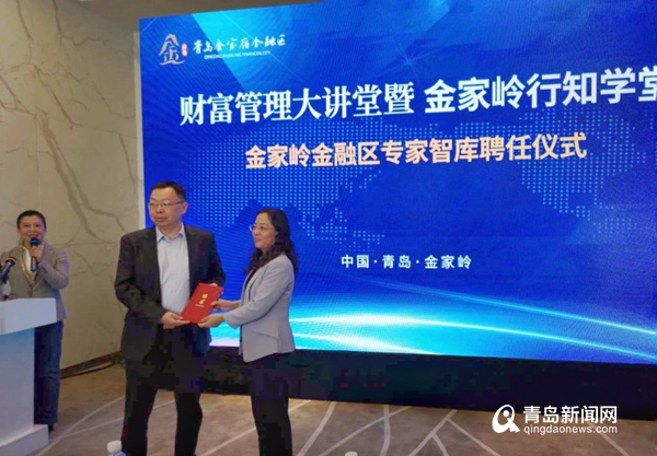 演講前,舉行了青島金家?guī)X金融區(qū)專(zhuān)家智庫(kù)聘任儀式,特聘董秀生為金家?guī)X金融區(qū)智庫(kù)專(zhuān)家。