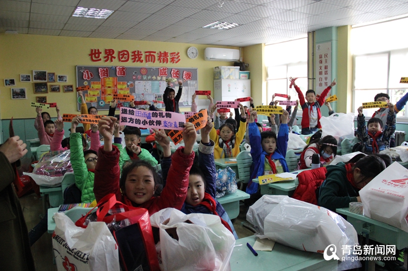 半年前,四年級一班開展的“微慈善,微心愿”主題活動,同學們響應(yīng)學校的號召“心中一點光,照進他人的夢想”,在彩紙寫下了自己的微心愿。有的想為貧困的小伙伴捐助圖書,讓他們也可以暢游在知識的海洋;有的想為山區(qū)的孩子提供棉衣,讓他們的冬天不再寒冷難捱;還有的孩子想為有困難的小伙伴做些事情,讓他們也擁有一個同樣幸福的童年。為此,班主任孫老師與家委會的家長多方走訪、聯(lián)系、籌備,在蒲公英社團的幫助下與沂南縣岸堤鎮(zhèn)中心小學的老師取得了聯(lián)系。