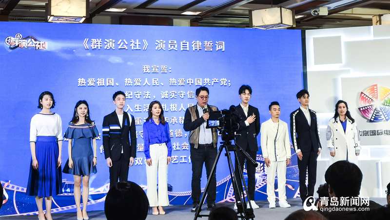 高亞麟帶領(lǐng)八位新人演員共同宣讀《群演公社》演員自律公約。