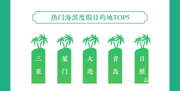 其中,三亞、廈門、大連、青島、日照等海濱度假目的地溫柔的海風(fēng)、清涼的海水令多數(shù)游客向往?!昂D先齺嗠p飛5日游”、“廈門-鼓浪嶼-云水謠土樓雙飛5日游”、“山東青島-威海-煙臺-蓬萊-大連雙飛6日游”等產(chǎn)品銷售火爆。
