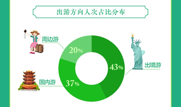 《報告》顯示,今年端午節(jié),選擇出境游的用戶占比43%,國內(nèi)游占37%,周邊游占20%。從具體出發(fā)時間來看,整體客流高峰預(yù)計將出現(xiàn)在6月7日左右。