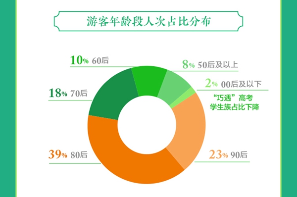 在預(yù)訂端午團(tuán)期出游的用戶中,80后人群最多,占比近4成,其次為90后人群,占比超過23%。由于今年高考與端午小長假“不期而遇”,高三學(xué)子“缺席”本輪端午出游。