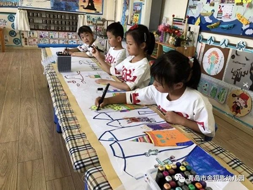 一場(chǎng)電影即一次旅行。電影日來(lái)臨前夕,小朋友們?cè)诿π┥赌??看,他們從電影票的設(shè)計(jì)到影片內(nèi)容的選擇全部由自己決定,是不是很了不起呢!
