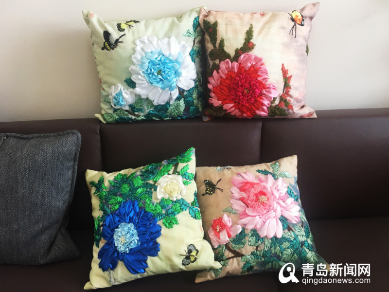 崔竹梅學(xué)生親手繡的抱枕