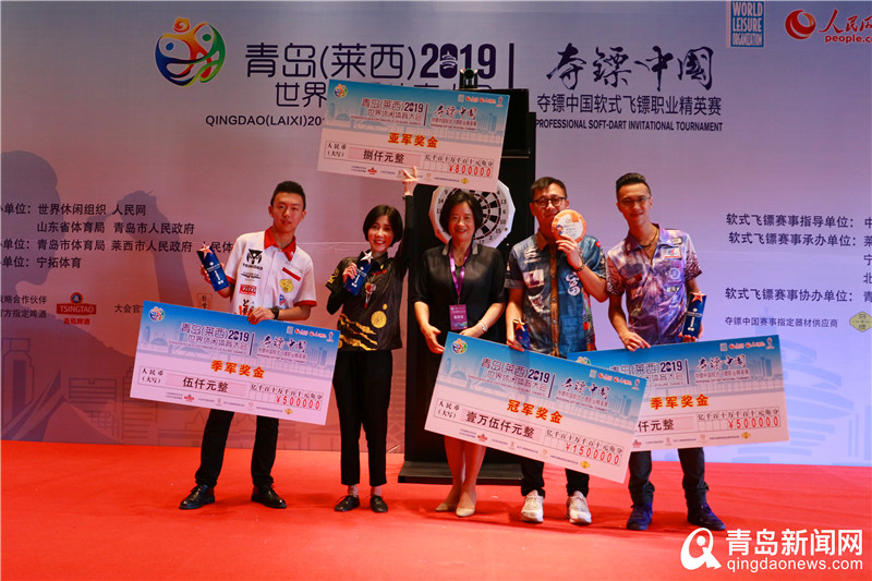 青島新聞網(wǎng)8月17日訊 (記者 劉文超)2019奪鏢中國·軟式飛鏢職業(yè)精英賽在青島萊西九頂莊園順利閉幕。經(jīng)過一整天激烈的比賽,伍其富在決賽中頂尖鏢手周莫默,比賽過程一波三折,伍其富以4:2拿到賽點,比賽進入關鍵的第7局,當伍其富剩下8分時,給了周莫默絕地反擊的機會,周莫默頂住壓力,以60、17*3、50的打法實現(xiàn)了161高拆,成功將比賽拖入第8局。不過,第8局中是伍其富的先手局,再沒有給周莫默任何機會,一路領先,最終以5:3拿下本次賽事的冠軍。周莫默惜敗收獲亞軍。伍其富在賽后接受采訪時表示,周莫默水平很高,私下李兩人也是非常好的朋友,經(jīng)常組隊參加世界大賽。