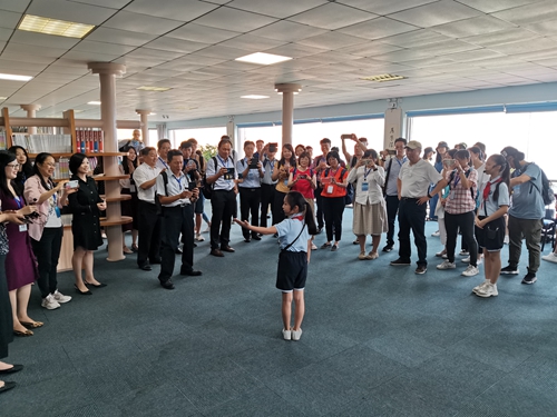 8月24日下午,來青出席“2019海洋教育國際研討會暨亞洲海洋教育學者會學術(shù)會議”的百余名國內(nèi)外教育專家學者就銀海海洋特色教育參觀考察了中國海洋大學附屬銀海學校和教育部全國中小
