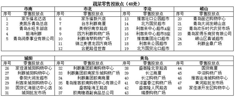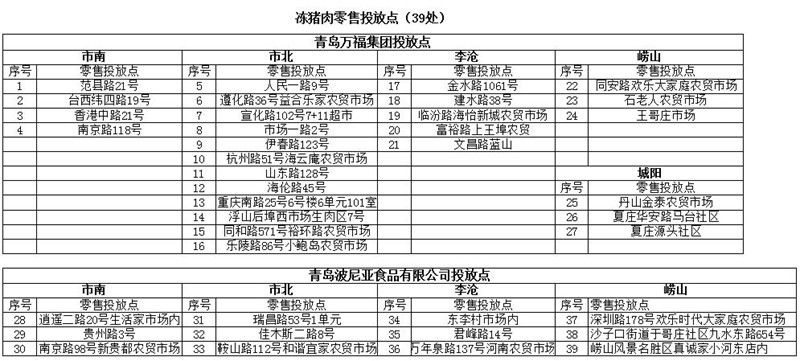 附:青島市政府凍豬肉和蔬菜儲備零售投放點(diǎn)
