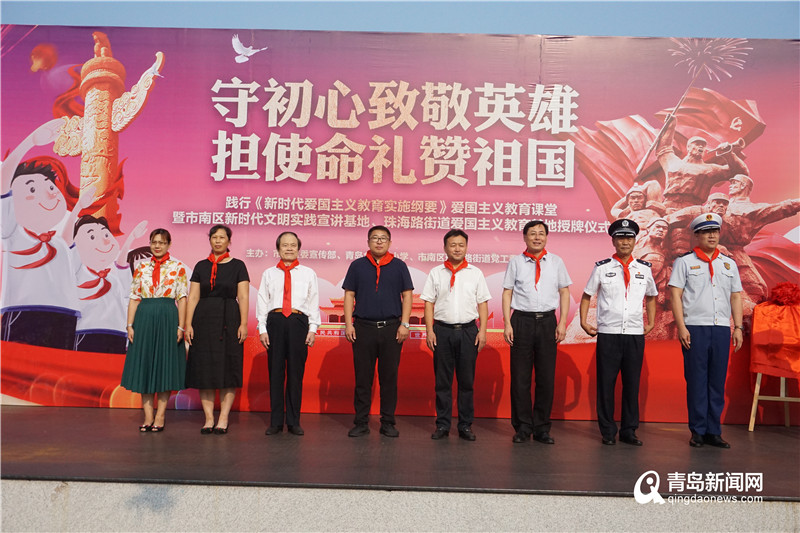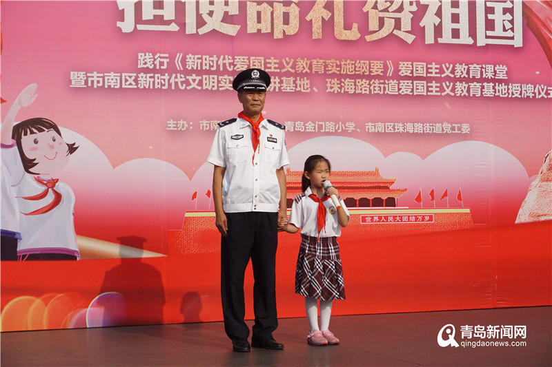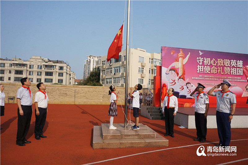 9月30日,在第6個烈士紀念日當天,青島金門路小學操場上,舉行了一場別開生面的升旗活動,由市南區(qū)委宣傳部、青島金門路小學、市南區(qū)珠海路街道黨工委聯(lián)合主辦的“守初心致敬英雄·擔使命禮贊祖國”——踐行《新時代愛國主義教育實施綱要》愛國主義教育課堂暨市南區(qū)新時代文明實踐宣講基地、珠海路街道愛國主義教育基地授牌儀式,讓這里成為了新時代愛國主義教育的新陣地。