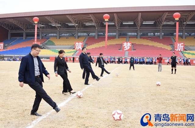 青島新聞網(wǎng)11月13日訊 初冬時節(jié)楓紅似火,綠茵沙場風云將起。昨天,膠州市第十三屆“琴牌乳業(yè)·市長杯”校園足球聯(lián)賽在膠州市體育中心開幕。本次賽事共有來自全市89支代表隊,1486名運動員齊聚綠茵場,賽事共歷時11天。在活動開幕儀式上,膠州市人民政府副市長徐海濤為比賽開球,一同參加開幕式還有膠州市教育和體育局、青島市膠州新城建設(shè)發(fā)展有限公司、青島新希望琴牌乳業(yè)有限公司相關(guān)領(lǐng)導(dǎo),膠州市各中小學、鄉(xiāng)鎮(zhèn)(街道)教育體育中心負責人。