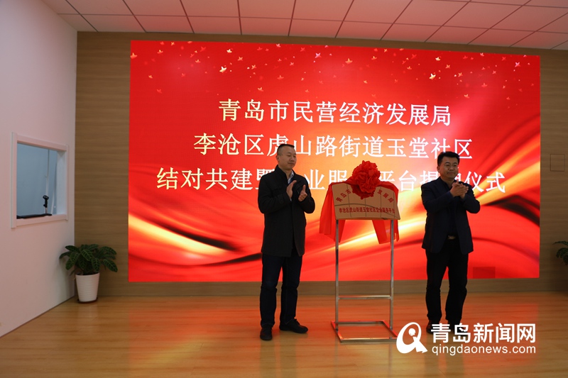 青島市民營(yíng)經(jīng)濟(jì)發(fā)展局與李滄區(qū)虎山路街道玉堂社區(qū)共建企業(yè)服務(wù)平臺(tái)揭牌。