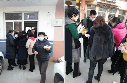工作人員發(fā)放應(yīng)急物資,并隨時(shí)做好后勤工作,累計(jì)儲(chǔ)備一次性口罩15000個(gè),消毒水2000瓶,大噴箱子4個(gè),大噴壺70把,防毒手套200副,保暖手套200副等。