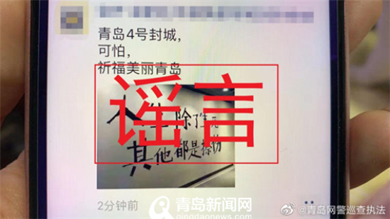 青島新聞網(wǎng)2月2日訊(記者 丁淑華)近日,一則“青島將于2月4日封城”的消息在朋友圈廣泛傳播。經(jīng)核實(shí),此消息為虛假消息。公安機(jī)關(guān)已對(duì)發(fā)布該信息的網(wǎng)民張某某,依法教育訓(xùn)誡。青島網(wǎng)警提醒:當(dāng)前正值防控新型冠狀病毒感染肺炎疫情的關(guān)鍵時(shí)刻,請(qǐng)廣大網(wǎng)民自覺抵制網(wǎng)絡(luò)謠言,不造謠、不信謠、不傳謠。密切關(guān)注官方信息,科學(xué)防護(hù),共克時(shí)艱。