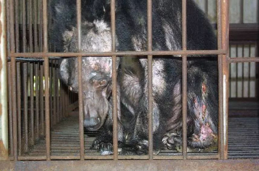 活體取膽帶來(lái)的巨大痛苦使黑熊慘叫、咆哮、自殘,甚至精神錯(cuò)亂。