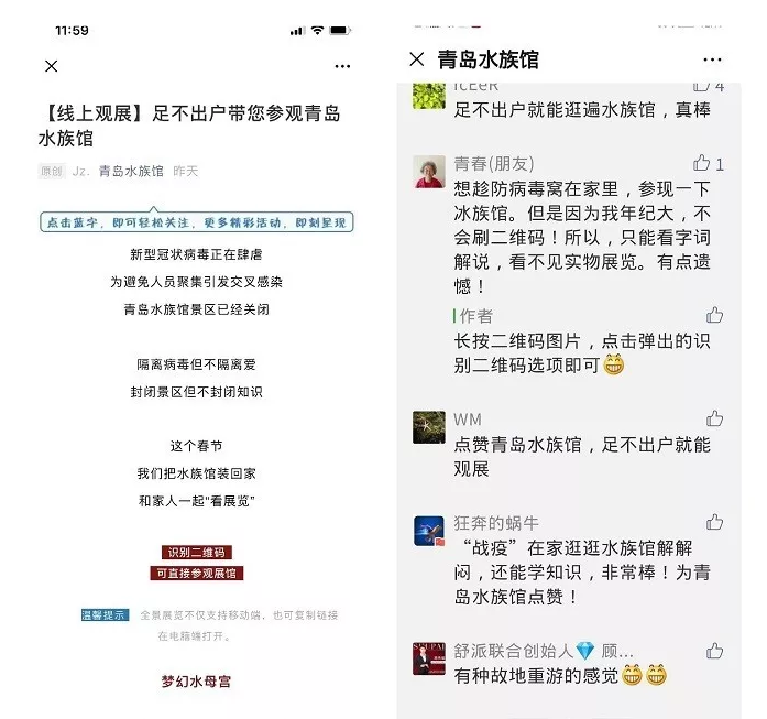 各級(jí)科協(xié)組織發(fā)揮專業(yè)優(yōu)勢(shì)積極開展線上科普。為配合全市疫情防控工作,青島海洋科技館和青島科技館在第一時(shí)間關(guān)閉場(chǎng)館的同時(shí)開播網(wǎng)上科普和網(wǎng)上展館,以“線上觀展”滿足公眾科普需求,受眾50余萬(wàn)人次;全市十個(gè)區(qū)市科協(xié)全面行動(dòng),充分運(yùn)用微信微博平臺(tái)、網(wǎng)站、電視等發(fā)布權(quán)威科普信息,播放科普視頻,開展科普作品創(chuàng)作征集等;青島市心理學(xué)會(huì)、心理衛(wèi)生協(xié)會(huì)等組建“網(wǎng)上心理咨詢志愿服務(wù)隊(duì)”,開展線上心理咨詢,為市民帶上“戰(zhàn)疫心靈口罩”;護(hù)理學(xué)會(huì)等40余家學(xué)會(huì)向各自領(lǐng)域科技工作者發(fā)起倡議,并利用專業(yè)優(yōu)勢(shì)發(fā)布權(quán)威科普知識(shí)。