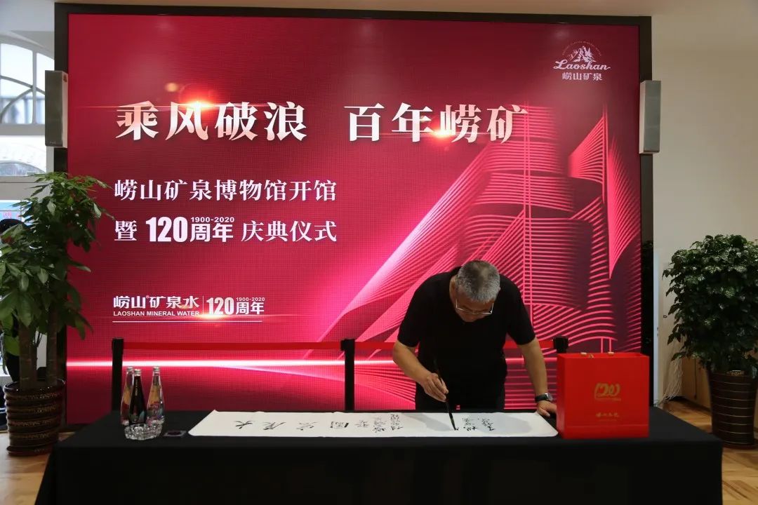 這5位書(shū)法家頂風(fēng)冒雨前來(lái),為嶗礦120周年慶送上祝福。書(shū)法家們?cè)谛埳蠄?zhí)筆揮毫,寫下了“一百二十年,匠心做好水”“百年嶗礦,繼往開(kāi)來(lái)”“乘風(fēng)破浪,百年嶗礦”等祝福語(yǔ)。