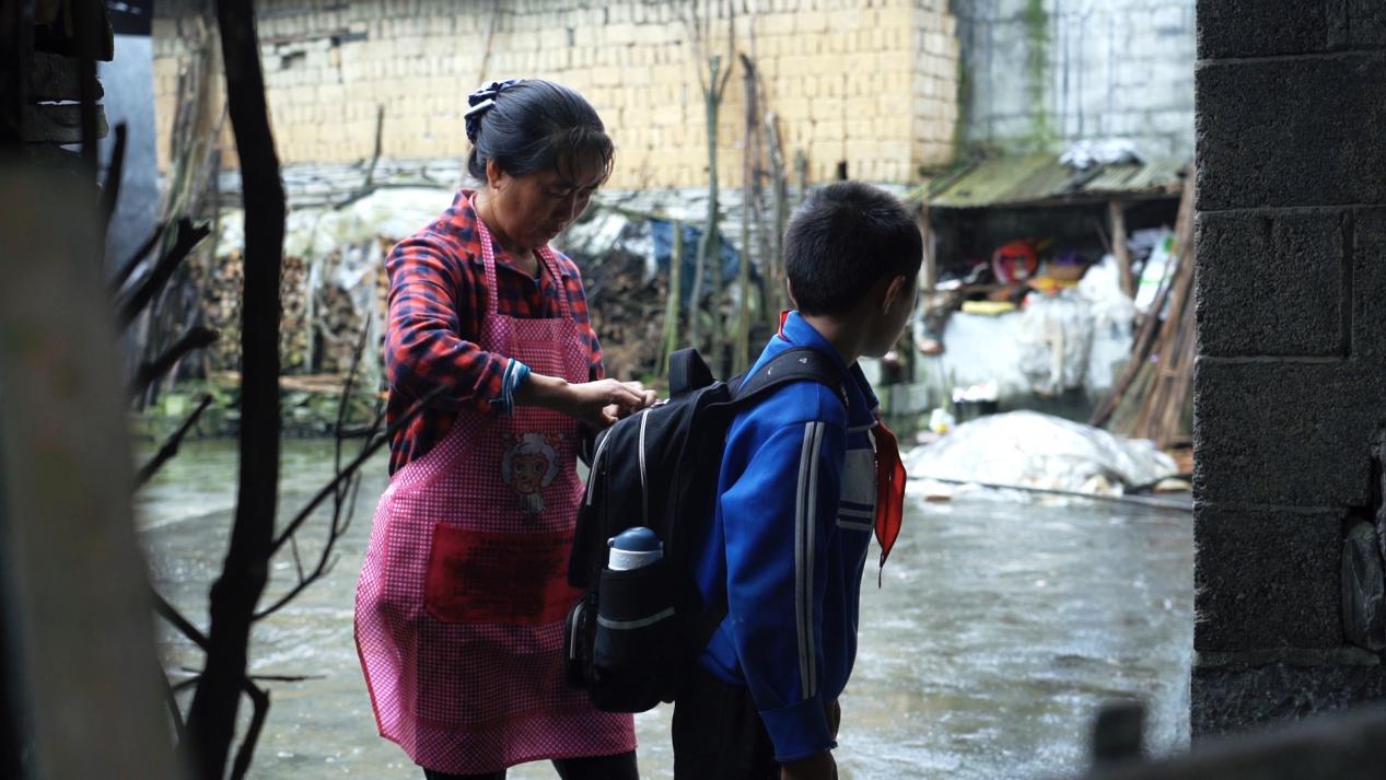 佳佳的父母常年在外打工,她跟著爺爺奶奶生活,由于還有弟弟妹妹需要照顧,懂事的佳佳每天都是自己步行上學(xué)。早上6點(diǎn),伴隨著公雞打鳴聲,佳佳起床開始洗漱。山里的天還沒有亮,廚房早已升起了炊煙,早起的爺爺已 經(jīng)在生火煮粥了,雖然不善言辭,但爺爺總是默默用行動(dòng)表現(xiàn)對(duì)佳佳的愛。