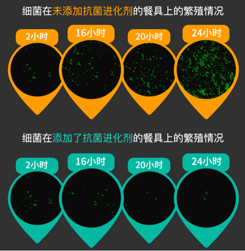 衛(wèi)好家研發(fā)經(jīng)理表示:單一金屬Ag+在一定條件下易被還原為單質(zhì)銀,抗菌性能減弱、顏色會變暗變黑,嚴重影響其應(yīng)用價值。在添加銀離子的基礎(chǔ)上加入鋅離子,使銀離子更穩(wěn)定,另外加入鋅離子也使得材料整體的抗菌性能大大加強。不僅僅是抗菌筷,衛(wèi)好家的餐具均添加了這款抗菌劑。近10年來,公司一直專注于做高分子新材料。衛(wèi)好家餐具里原料所用的抗菌劑,能緩釋銀、鋅離子,對多種致病菌有抑制甚至滅殺作用。