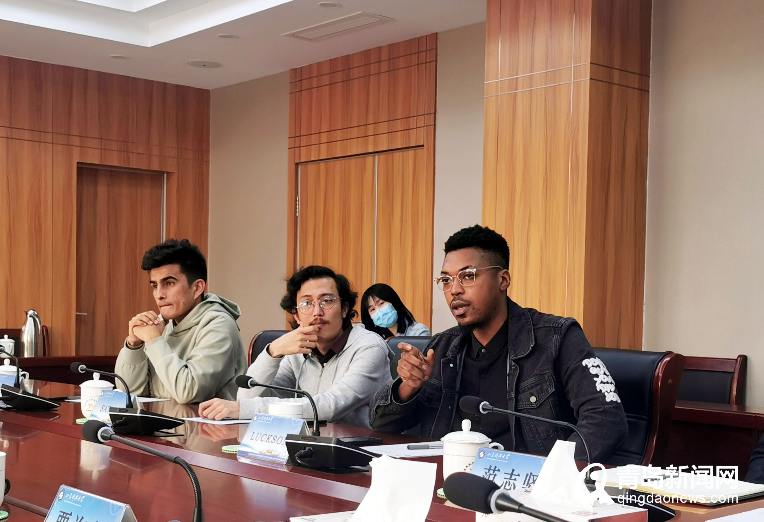 隨后的山東科技大學(xué)活動現(xiàn)場,國際教育學(xué)院負(fù)責(zé)人介紹了本校國際教育、國外招生、學(xué)生管理等各項(xiàng)工作。外國留學(xué)生也通過座談進(jìn)一步了解了就業(yè)創(chuàng)業(yè)優(yōu)惠政策,增強(qiáng)了留青發(fā)展的意愿。留學(xué)生SATISH表示畢業(yè)后要留青創(chuàng)業(yè),詢問了工作許可、入境簽證、優(yōu)惠政策等細(xì)節(jié);已在青注冊公司的畢業(yè)生LUCKSON表示要繼續(xù)擴(kuò)大經(jīng)營,尋找中國伙伴共同創(chuàng)業(yè)。