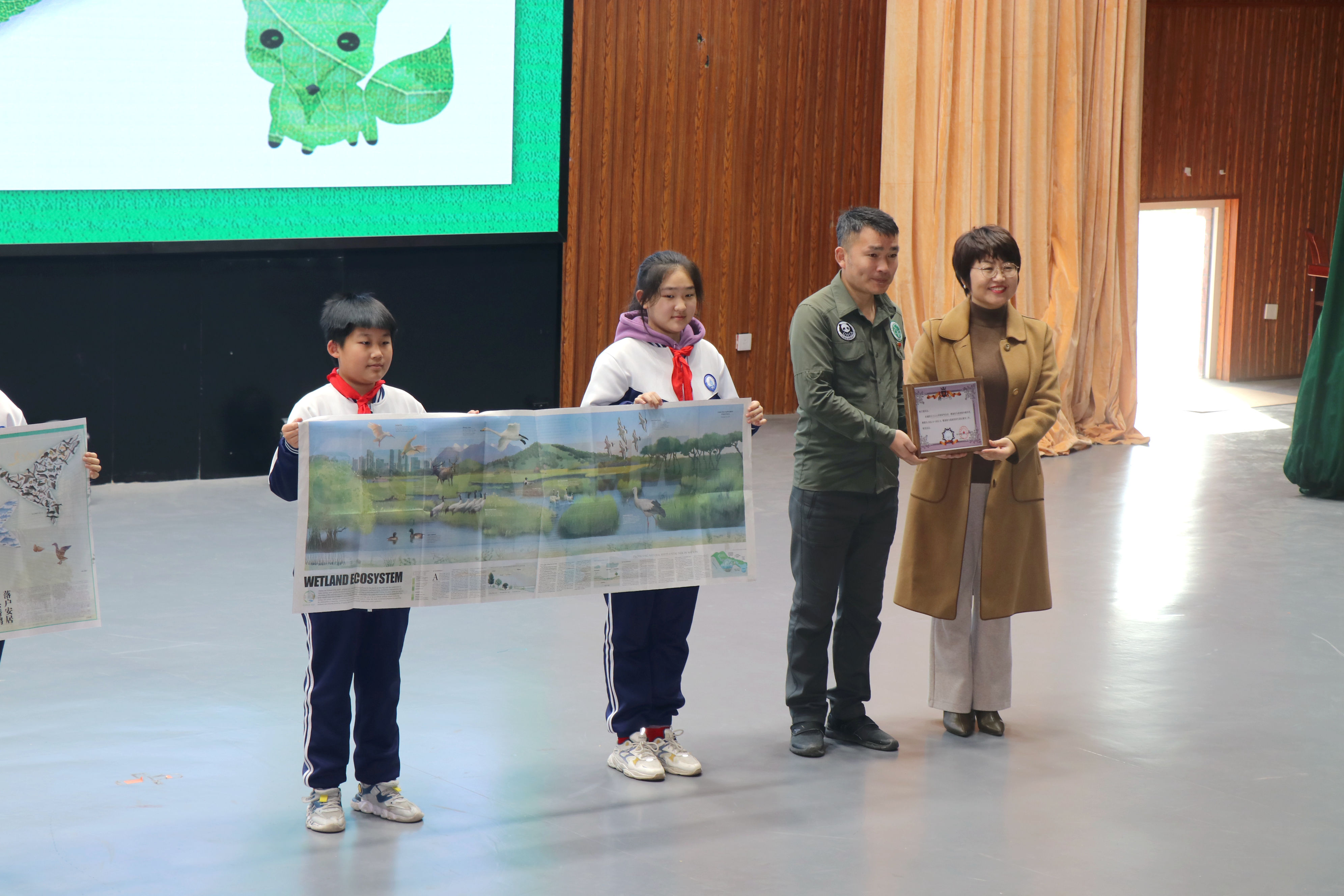 活動現(xiàn)場,城陽區(qū)野生動植物保護協(xié)會會長徐立強首先通過展示美麗的白沙河濕地和棲息于此的美麗生靈——各種珍稀鳥類如黑嘴端中華鳳頭燕鷗、東方白鸛、青頭潛鴨等國家一級重點保護野生動物,讓大家充分認識身邊濕地之美。之后通過與學生們互動、分享濕地保護志愿工作為濕地生態(tài)帶來的巨大變化,講述生態(tài)文明與生產生活的密切聯(lián)系,以及在國家高質量發(fā)展中的重要地位,讓保護濕地這顆種子在孩子們心中生根發(fā)芽。宣講最后,徐會長將《濕地公約》第十四屆締約方大會上的報刊讀物贈予同學們,增進大家對濕地保護的認識,呼吁大家主動參與濕地保護志愿活動,讓青少年親身領略生物多樣性的魅力。