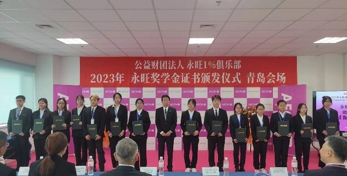 2008年起,永旺1%俱樂部與青島永旺共同在青島兩所高校設(shè)立“永旺獎(jiǎng)學(xué)金”制度,用于幫助品學(xué)兼優(yōu)的學(xué)生完成學(xué)業(yè),實(shí)現(xiàn)理想。截至2023年項(xiàng)目實(shí)施已16屆,共有1150名學(xué)生獲得獎(jiǎng)勵(lì),獎(jiǎng)學(xué)金總金額已達(dá)580余萬元。在此希望同學(xué)們能夠不負(fù)韶華,努力學(xué)習(xí),為增進(jìn)相互理解和促進(jìn)共同發(fā)展積極貢獻(xiàn)力量。青島永旺將不斷深化中日青少年交流,為推動(dòng)兩國友好事業(yè)取得更大發(fā)展!