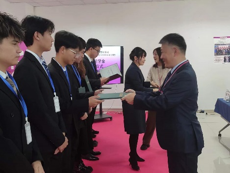 公益財(cái)團(tuán)法人永旺 1%俱樂部 森 美樹理事長、青島永旺東泰商業(yè)有限公司谷 直知總經(jīng)理分別向兩所高校獲獎(jiǎng)同學(xué)頒發(fā)《獲獎(jiǎng)證書》。