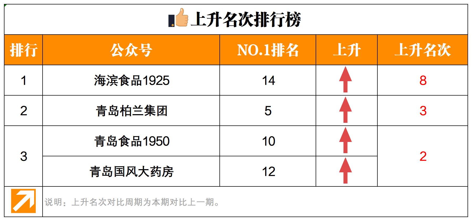 本期重回榜單賬號:“海濱食品1925”、“青島環(huán)球集團(tuán)”。