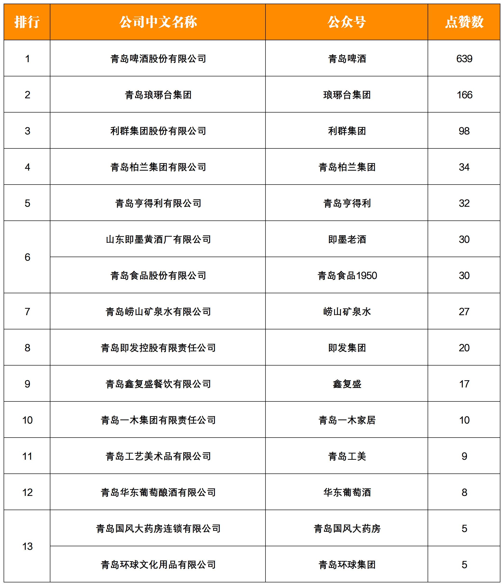NO.13|權威發(fā)布:青島老字號企業(yè)微信影響力月度排行榜TOP15