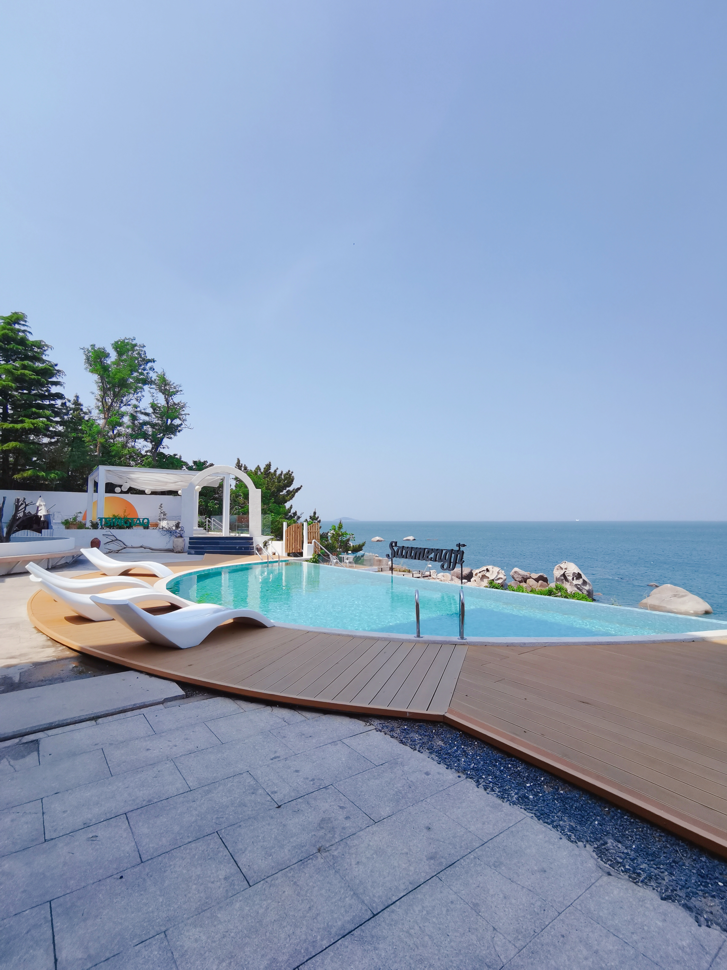 室外無(wú)邊180°游泳池,湛藍(lán)與天相接,美到極致。潮起時(shí),浪花如星屑般璀璨;潮落時(shí),陽(yáng)光斜灑,為這方天地鍍上一層金輝。