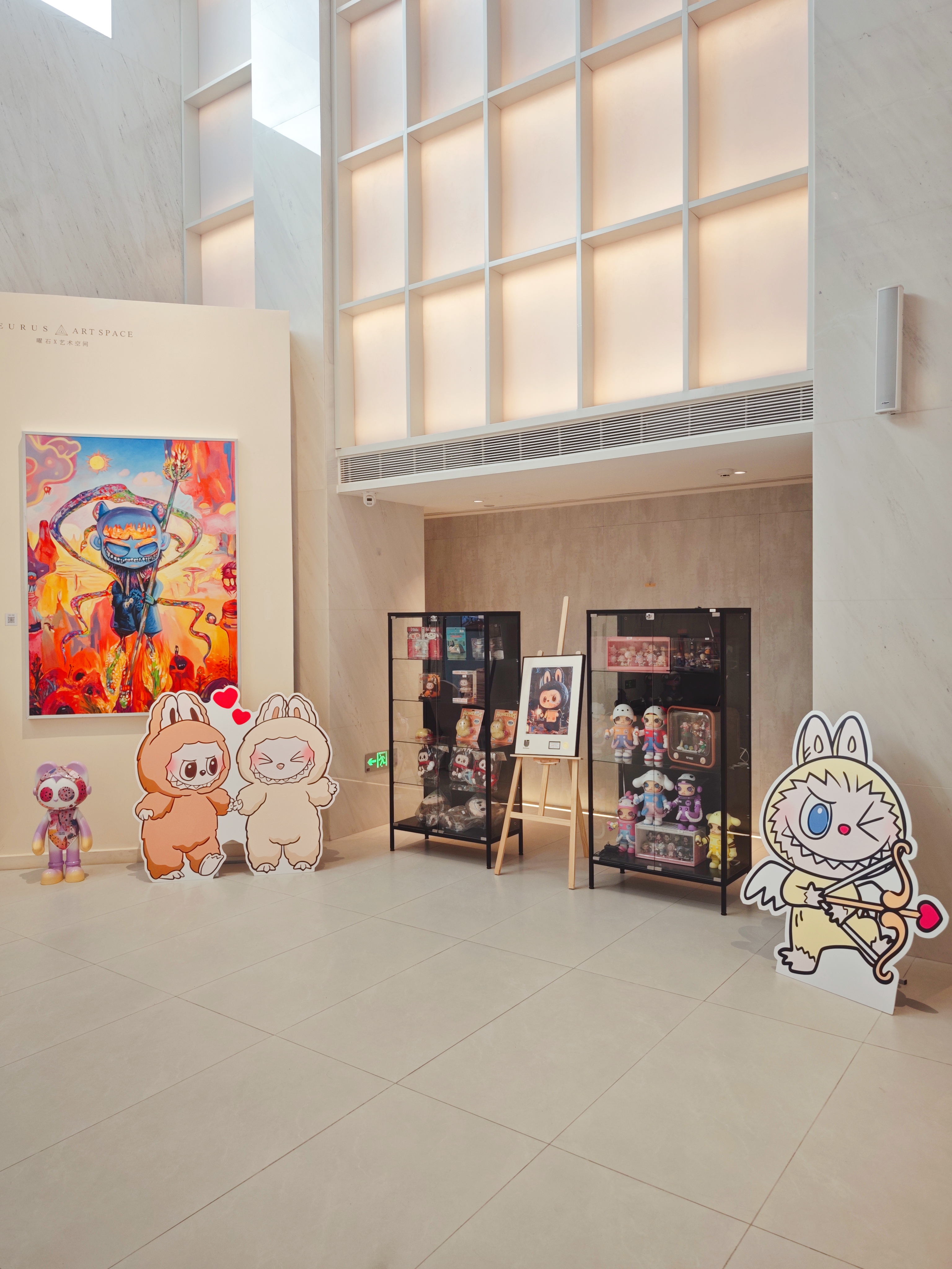 一樓展廳變身童話世界,Labubu和Molly的創(chuàng)意版畫(huà)、限量潮玩齊聚一堂,隨手一拍就是朋友圈C位大片。