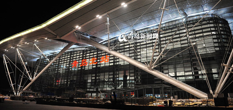 青島火車北站站場設(shè)計為8場16線,站房內(nèi)容納人數(shù)8000人??偼顿Y25億元,占地總面積4萬㎡,2013年底基本建成,啟用后當(dāng)年的日發(fā)送客流量將達4萬人次。