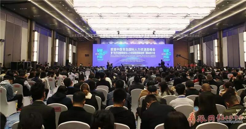 △首屆中國?青島國際人力資源高峰會暨“經(jīng)濟(jì)動能轉(zhuǎn)換與人力資源管理新趨勢”國際研討會開幕式現(xiàn)場。