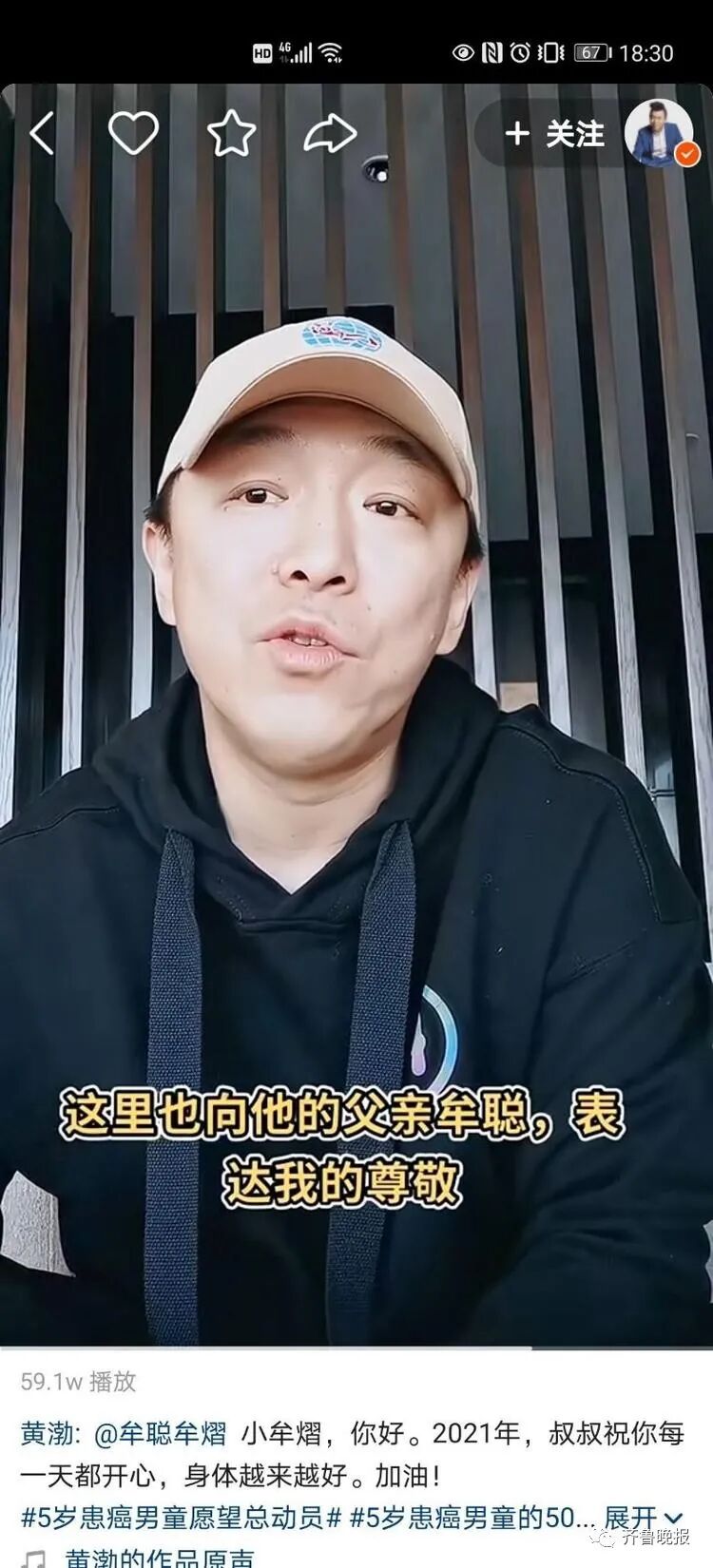 黃渤還特別提到要向牟熠的父親牟聰表達他的尊敬,說道“您辛苦了?!弊鳛榈谝粋€關(guān)注小牟熠50個心愿的媒體,記者也第一時間聯(lián)系到牟聰,他表示看到黃渤的視頻之后很高興,牟聰也很開心,他非常感恩黃渤老師這么忙還抽出時間來關(guān)心牟熠,給牟熠加油打氣和鼓勵,全家都非常感謝黃渤。