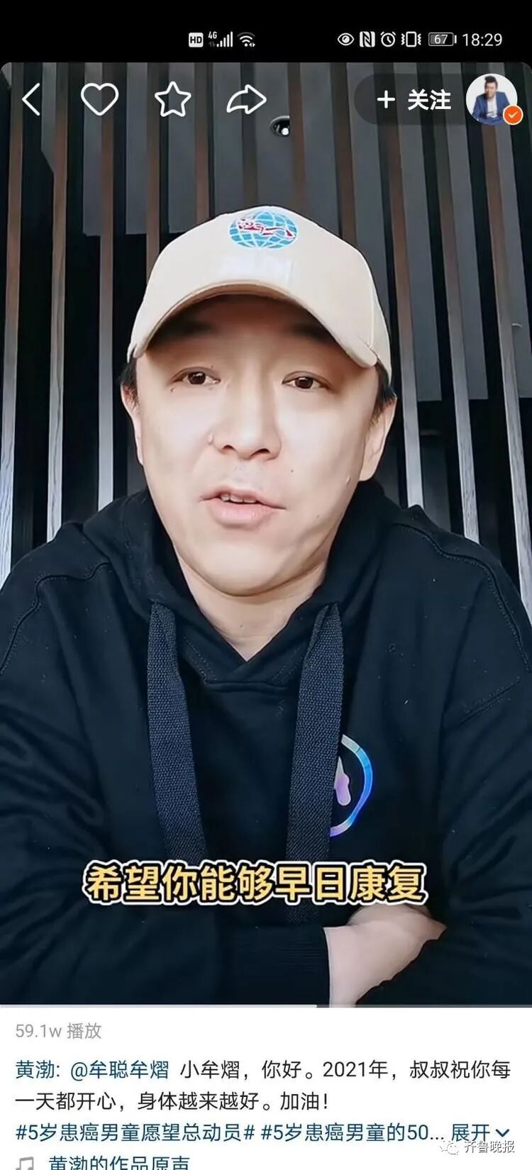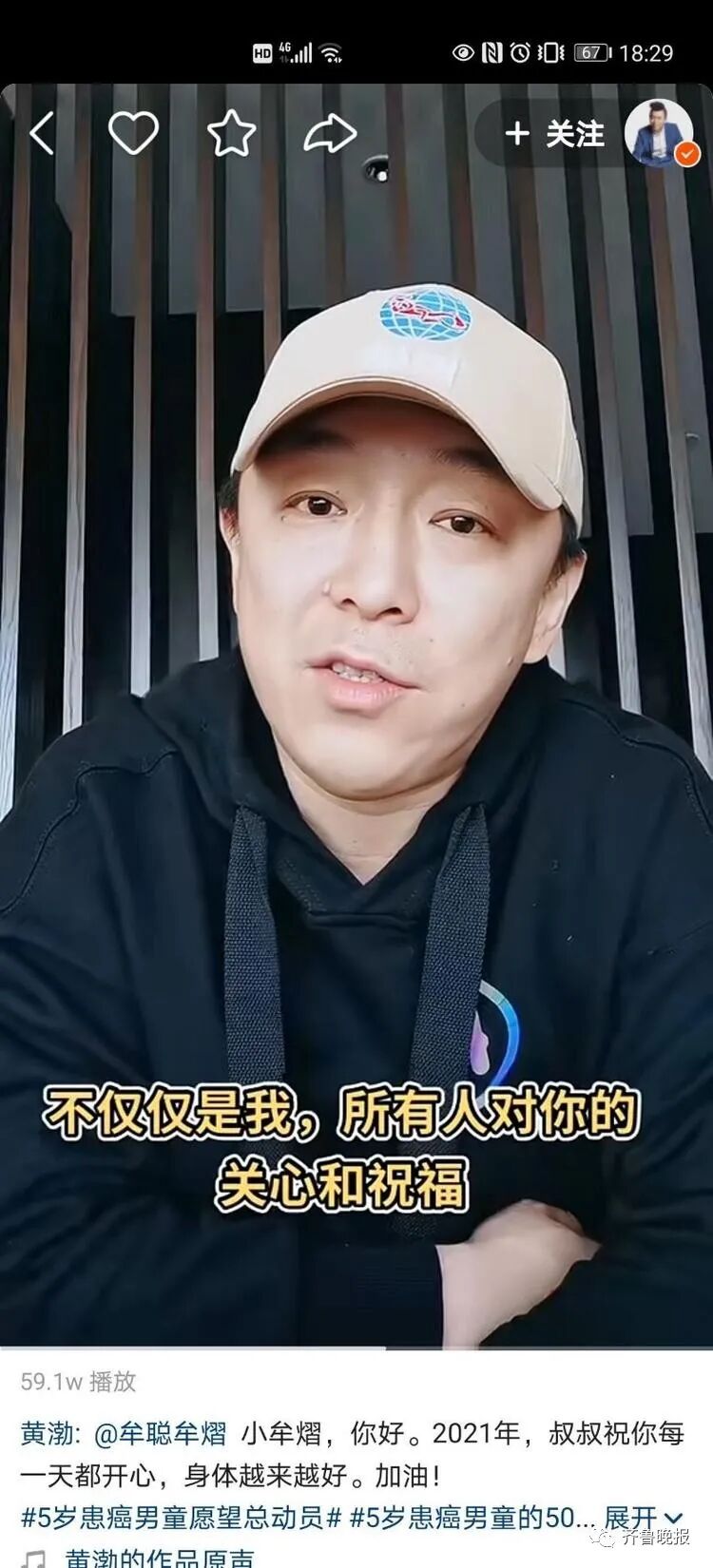 在視頻中,黃渤說到,他最近收到了一個特別的來信,知道了一位含辛茹苦的父親牟聰正帶著孩子四處求醫(yī),十分辛苦,很不容易。他還特別提到看到了新年之際,小牟熠的50個愿望,其中有一個愿望就是希望見到他,“牟熠,你好,我們在這里用這樣的方式見面了。因為疫情跟種種原因,我們只能這樣相見。但是,我在這里給你送上的,不僅僅是我,(還有)所有人對你的關(guān)心和祝福。希望你能夠早日康復(fù)?!?/strong>